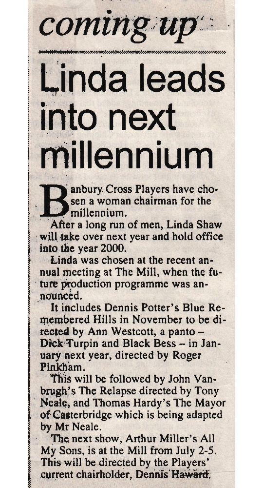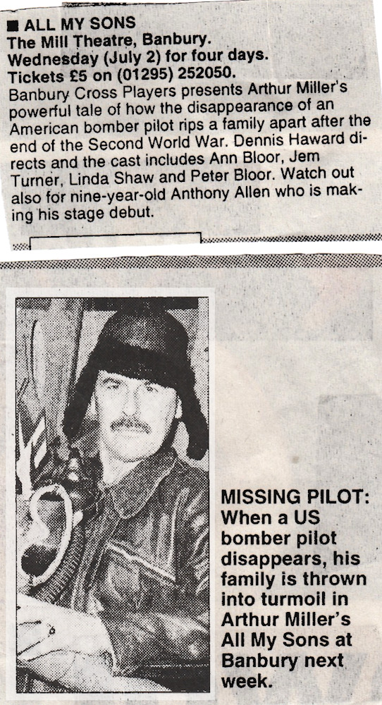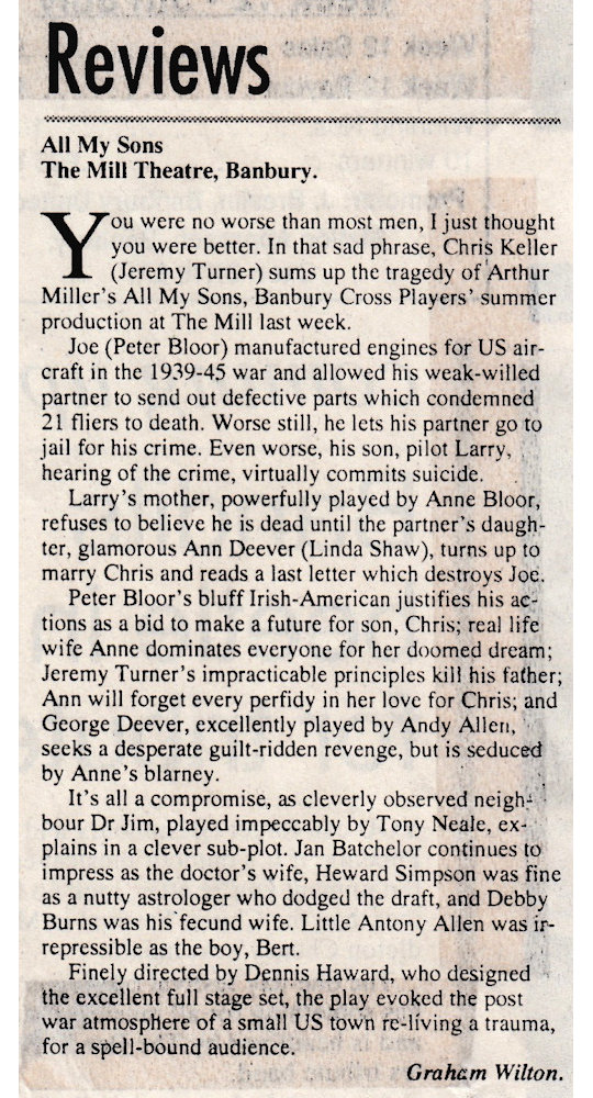 All My Sons by Arthur Miller was performed by Banbury Cross Players at The Mill Arts Centre from 2-5 July 1997.